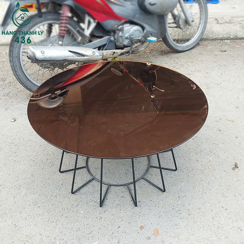 Bàn Tròn Sofa Mặt Kính Vàng Hồng Chân Sắt Màu Đen