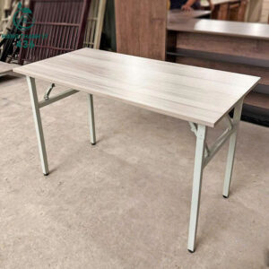 - Mô tả: Bàn làm việc gấp gọn với thiết kế tiện dụng, khung chân sắt có thể xếp lại khi không dùng tới, tiết kiệm diện tích. Mặt bàn màu xám vân gỗ nhẹ nhàng dễ lau chùi. Chân màu sáng, có thanh chống gập đảm bảo độ vững chắc khi sử dụng. Bàn thích hợp dùng làm bàn học, bàn làm việc tại nhà, bàn trưng bày tạm thời hoặc dùng tại hội chợ, sự kiện. Nhẹ, dễ di chuyển, dễ tháo lắp và lưu trữ khi không dùng.