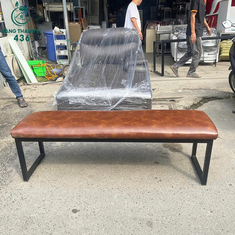 Băng Ghế Dài Cũ Khung Kim Loại Mặt Da