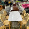 - Mô tả: Ghế sofa dài cũ bọc da màu nâu, lưng tựa thiết kế rút nút nhẹ tạo điểm nhấn trang nhã. Mặt ngồi rộng, đệm dày, không bị xẹp lún, phù hợp sử dụng cho quán cafe, nhà hàng, sảnh chờ hoặc phòng khách nhỏ. Ghế không tay vịn, giúp tối ưu diện tích và dễ phối đồ. Khung gỗ bên trong chắc chắn, chân gỗ sơn đen vững chãi. Sản phẩm đã qua sử dụng nhưng còn đẹp, sạch sẽ, sử dụng tốt ngay.