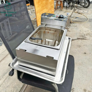 - Mô tả: Bếp chiên nhúng điện cũ 1 ngăn, chất liệu inox sáng bóng, bền bỉ và dễ vệ sinh. Máy có rổ chiên inox kèm tay cầm cách nhiệt, giúp thao tác an toàn. Nhiệt độ có thể điều chỉnh linh hoạt, thích hợp chế biến nhiều món ăn như khoai tây chiên, gà rán, hải sản, nem cuốn… Công suất lớn, làm nóng nhanh, giữ nhiệt ổn định giúp chiên thực phẩm vàng giòn nhanh chóng. Thiết kế gọn gàng, dễ di chuyển và bảo quản.