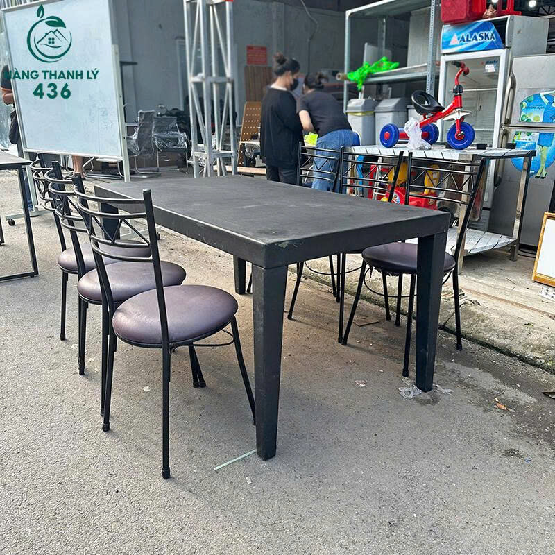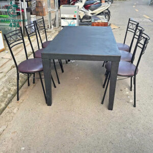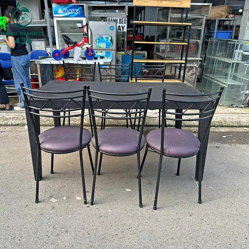 Bộ Bàn Ăn Cũ 6 Ghế Khung Sắt Bọc Đệm Mặt Bàn Gỗ Chắc Chắn
