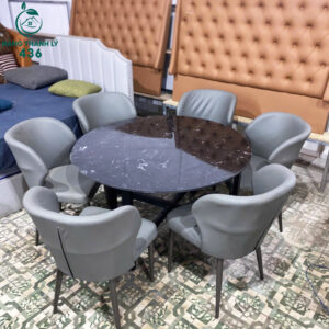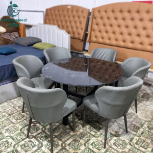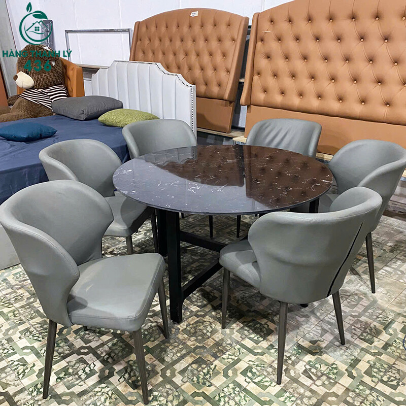 Bộ Bàn Ăn Mặt Đá Ghế Da Màu Xám Mới 99%