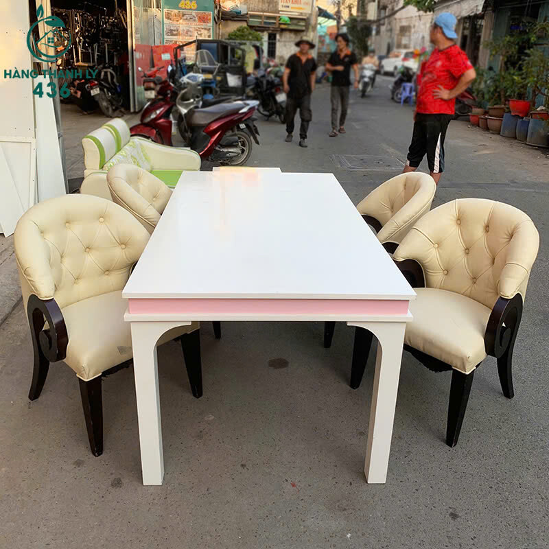 - Giá thanh lý: 3.180.00đ/ 1 bộ – bàn: 200.000đ – ghế: 750.000đ/ 1 cái