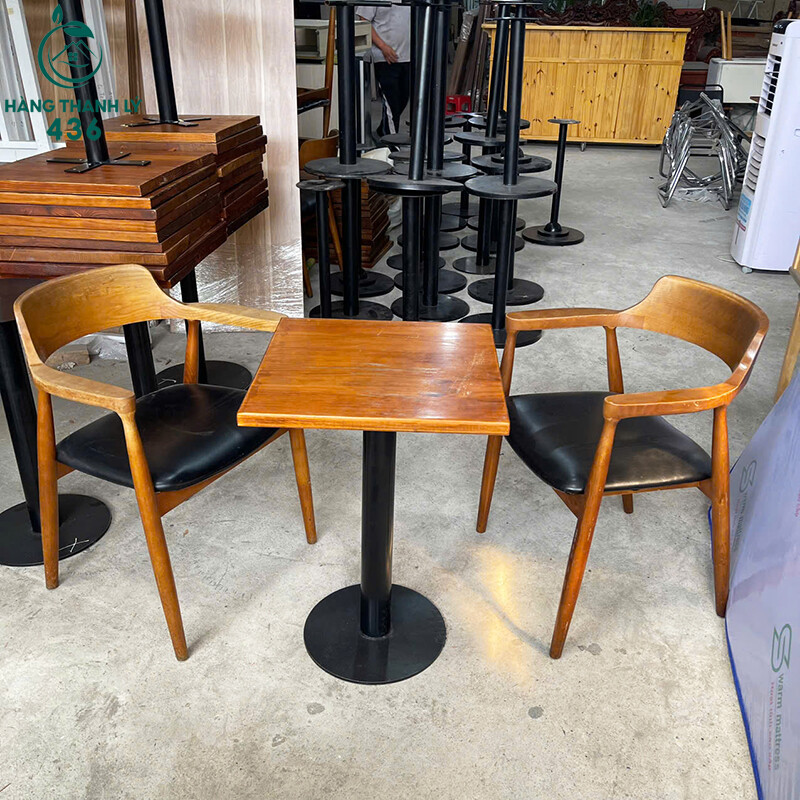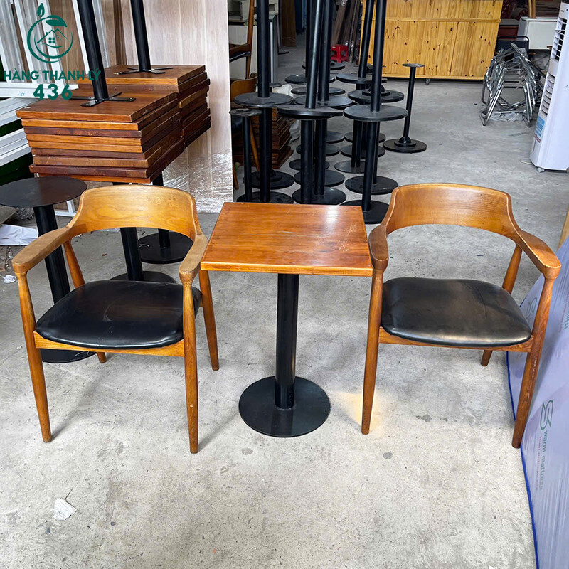 Bộ Bàn Ghế Cafe Cũ 2 Ghế Gỗ 1 Bàn Chân Sắt