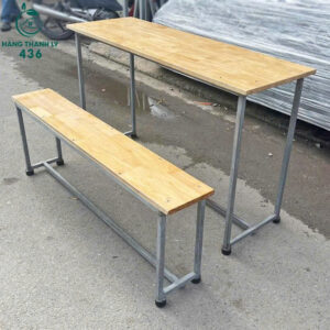 - Mô tả: Bộ bàn ghế học sinh cũ gồm 1 bàn dài và 1 ghế băng liền phù hợp dùng trong trường học, lớp học thêm hoặc trung tâm. Mặt bàn và mặt ghế làm từ gỗ, đã xử lý trơn mịn, không gây xước tay. Khung chân làm từ sắt vuông sơn màu xám nhám, độ chịu lực cao. Sản phẩm còn sử dụng tốt, tổng thể vẫn chắc chắn và an toàn cho học sinh sử dụng.
