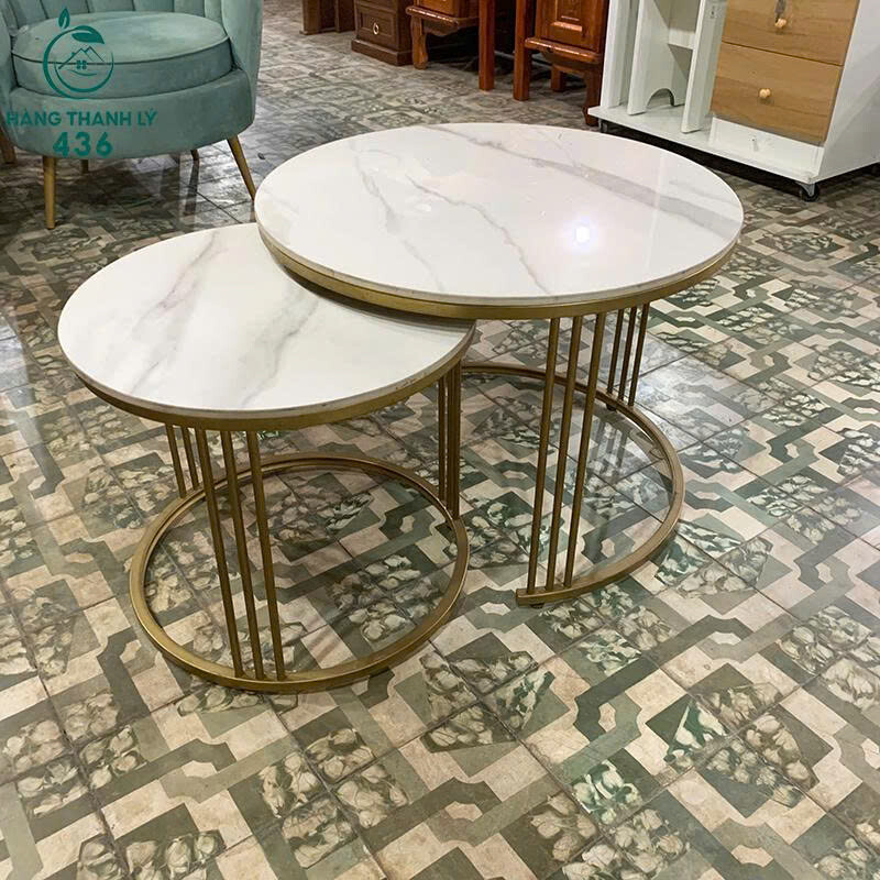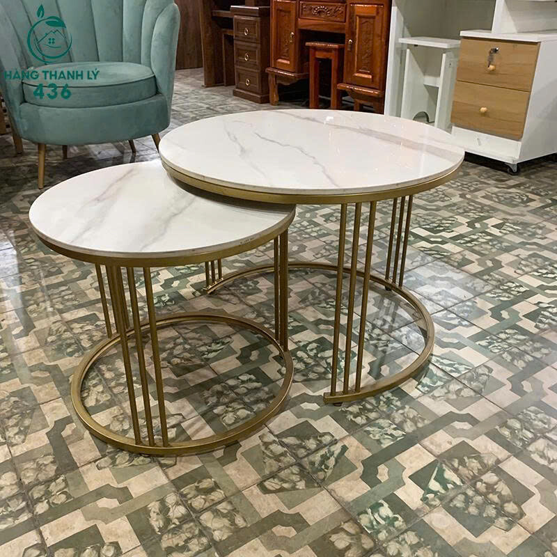 Mô tả: Bộ bàn sofa mặt đá cũ với thiết kế thanh lịch, hiện đại, tạo điểm nhấn cho không gian phòng khách. Mặt đá chắc chắn, dễ dàng vệ sinh, cùng khung kim loại sơn tĩnh điện bền bỉ. Bộ sản phẩm bao gồm hai bàn tròn, kích thước phù hợp với mọi không gian, mang lại sự tiện lợi và tính thẩm mỹ cao.