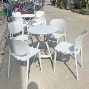 Bộ Bàn Tròn Ghế Nhựa Cho Quán Cafe Ngoài Trời Mới 99% (Nhiều Màu)