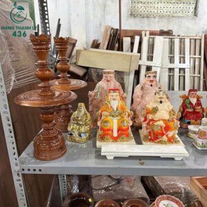 - Mô tả: Bộ đồ thờ cũ tại Hàng Thanh Lý 436 gồm nhiều mẫu bàn thờ, lư hương, chân nến, bát nhang, tượng Thần Tài – Ông Địa – Phúc Lộc Thọ men sứ. Hàng còn nguyên vẹn, sạch đẹp, có thể sử dụng ngay sau khi lau chùi nhẹ. Chất liệu gỗ kết hợp sứ men bóng giúp bộ thờ giữ được nét trang nghiêm. Phù hợp cho gia đình, cửa hàng hoặc công ty đang cần sắm lại bàn thờ với chi phí tiết kiệm nhưng vẫn đảm bảo thẩm mỹ và phong thủy tốt.