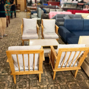 - Mô tả: Ghế sofa đơn khung gỗ kết hợp với nệm vải màu xám trang nhã, tạo cảm giác sang trọng và dễ phối với nhiều không gian khác nhau. Sản phẩm đi kèm đôn nhỏ tiện lợi, có thể dùng làm ghế ngồi phụ hoặc kê chân khi thư giãn. Tựa lưng cao, đệm dày êm ái giúp ngồi lâu không bị mỏi, phù hợp cho phòng khách, phòng đọc sách hay đặt tại ban công để nghỉ ngơi. Chất liệu gỗ bền bỉ, đệm vải dễ vệ sinh và giữ màu lâu dài. Mặt bàn có kích thước vừa phải, phù hợp dùng cho phòng khách, quán cafe, homestay hoặc văn phòng tiếp khách.