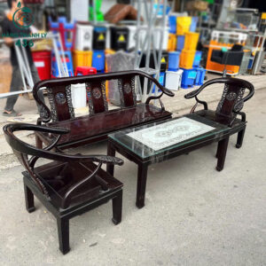 - Mô tả: Bộ salon gỗ cũ gồm 1 băng dài, 2 ghế đơn và 1 bàn kính, được làm từ gỗ tự nhiên chắc chắn, màu nâu cánh gián sang trọng. Mặt bàn lót kính dày, dễ lau chùi, giúp tăng độ bền và giữ thẩm mỹ cho sản phẩm. Hoa văn chạm khắc tinh tế, tạo điểm nhấn mang phong cách cổ điển. Sản phẩm phù hợp cho phòng khách, phòng chờ hoặc không gian trưng bày. Bộ ghế còn mới khoảng 90%, gỗ chắc, có sẵn tại kho!