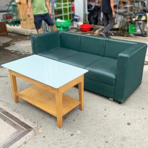Bộ Sofa Da Xanh Lá Kèm Bàn Gỗ Mặt Kính Cũ