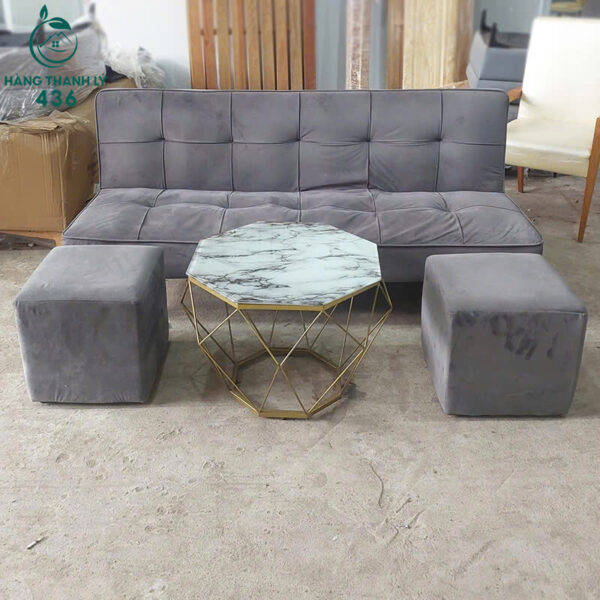 Bộ Sofa Ghế Giường Thông Minh Bọc Vải Xám Kèm Đôn