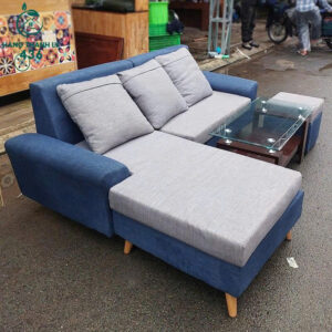 Bộ Sofa Góc L Bọc Vải Cũ Xanh Xám Hiện Đại