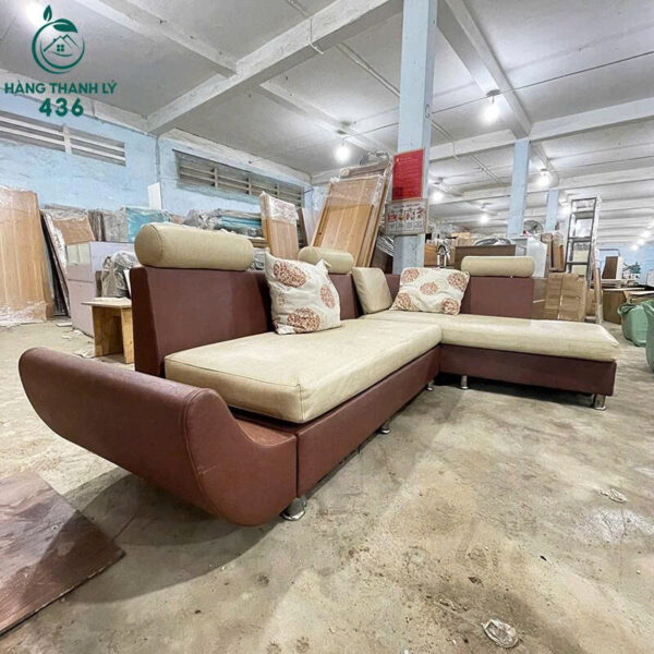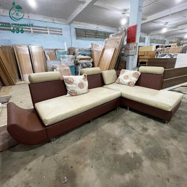 Bộ Sofa Góc L Cũ Bọc Da Nâu Phối Kem Trang Nhã Hiện Đại