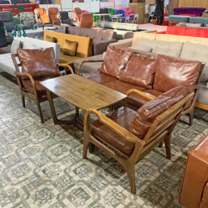 - Mô tả: Sofa Katana bọc da nâu với thiết kế đơn giản, hiện đại, tạo sự thoải mái cho không gian phòng khách hoặc văn phòng. Bộ sofa bao gồm 3 ghế: 2 ghế đơn và 1 ghế dài dễ dàng tạo dáng theo ý muốn, giúp bạn thư giãn, nghỉ ngơi sau những giờ làm việc căng thẳng. Với chất liệu da nâu bền đẹp, dễ vệ sinh và chống trầy xước, sản phẩm thích hợp cho các không gian sống hiện đại. Sofa có kích thước vừa phải, dễ dàng bài trí trong nhiều không gian, từ phòng khách đến phòng làm việc.
