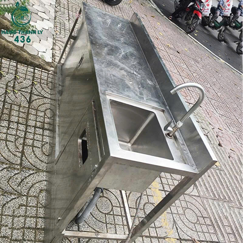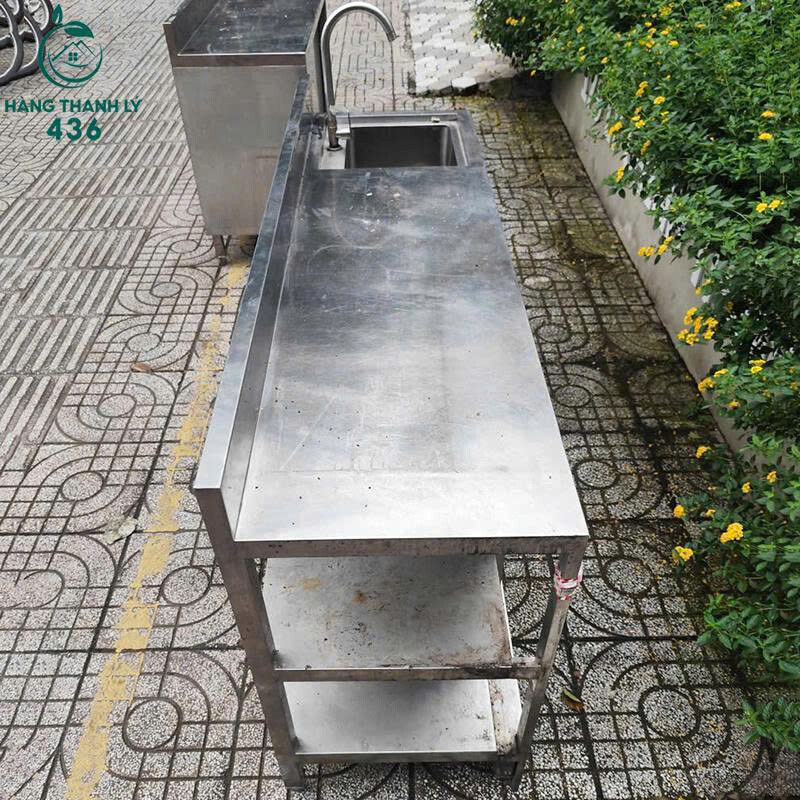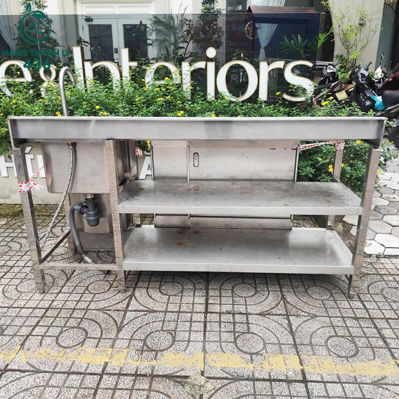 - Mô tả: Bàn inox cũ có bồn rửa tích hợp tiện lợi, phù hợp sử dụng trong bếp nhà hàng, quán ăn, căng tin, hoặc bếp gia đình. Bàn được làm từ inox dày dặn, dễ vệ sinh, đảm bảo an toàn vệ sinh thực phẩm. Phía dưới có 2 tầng kệ rộng, giúp đặt xoong nồi, rổ rá hoặc dụng cụ nấu nướng gọn gàng. Bồn rửa sâu, thoát nước nhanh, thuận tiện cho thao tác rửa chén, rau củ. Kết cấu bàn chắc chắn, chịu tải tốt, tình trạng mới khoảng 90%, sử dụng bền bỉ lâu dài.