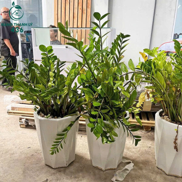 - Mô tả: Chậu cây kim tiền cũ được trồng trong chậu sứ trắng, thích hợp trang trí không gian văn phòng hoặc gia đình. Với đặc điểm lá xanh bóng mượt, tán đều và dễ chăm sóc, cây mang lại cảm giác tươi mát, giúp không gian làm việc trở nên sinh động và gần gũi hơn. Ngoài tác dụng trang trí, cây còn được xem là biểu tượng phong thủy mang lại may mắn và tài lộc cho gia chủ. Chậu cây có kích thước vừa phải, dễ dàng đặt ở góc phòng, cạnh bàn làm việc, phòng khách hay hành lang.