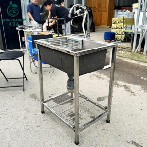 - Mô tả: Chậu rửa inox cũ 1 ngăn, thiết kế gọn nhẹ và tiện dụng, phù hợp cho các quán ăn, quán cafe, bếp nhỏ hoặc gia đình. Sản phẩm làm từ inox, bề mặt sáng bóng, dễ vệ sinh sau khi sử dụng. Phía dưới có kệ inox song ngang để đặt rổ, thau hoặc vật dụng bếp. Kèm theo rổ thoát nước tiện lợi giúp úp chén đĩa nhanh khô. Chậu còn mới khoảng 90%, khung chắc chắn, không thủng rỉ, vòi hoạt động tốt. Thích hợp dùng cho bếp công nghiệp, nhà hàng, quán ăn hoặc hộ gia đình nhỏ cần thiết bị gọn và bền.