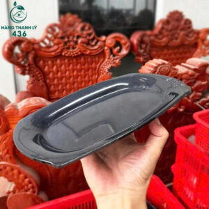 - Mô tả: Chiếc đĩa màu đen hình bầu dục này mang lại vẻ đẹp đơn giản nhưng không kém phần tinh tế cho không gian của bạn. Với chất liệu cao cấp, đĩa có độ bền tốt, chống trầy xước và dễ dàng vệ sinh. Bề mặt bóng mịn tạo cảm giác sạch sẽ, sang trọng khi sử dụng. Kích thước vừa phải giúp bạn linh hoạt dùng để đựng các món ăn.