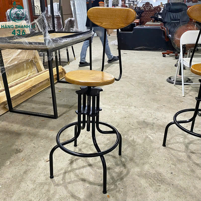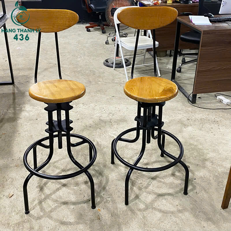Ghế Bar Xoay Tựa Lưng Cao Mặt Gỗ Nâng Hạ Thoải Mái Cũ