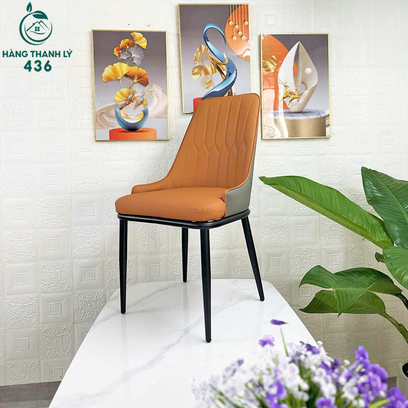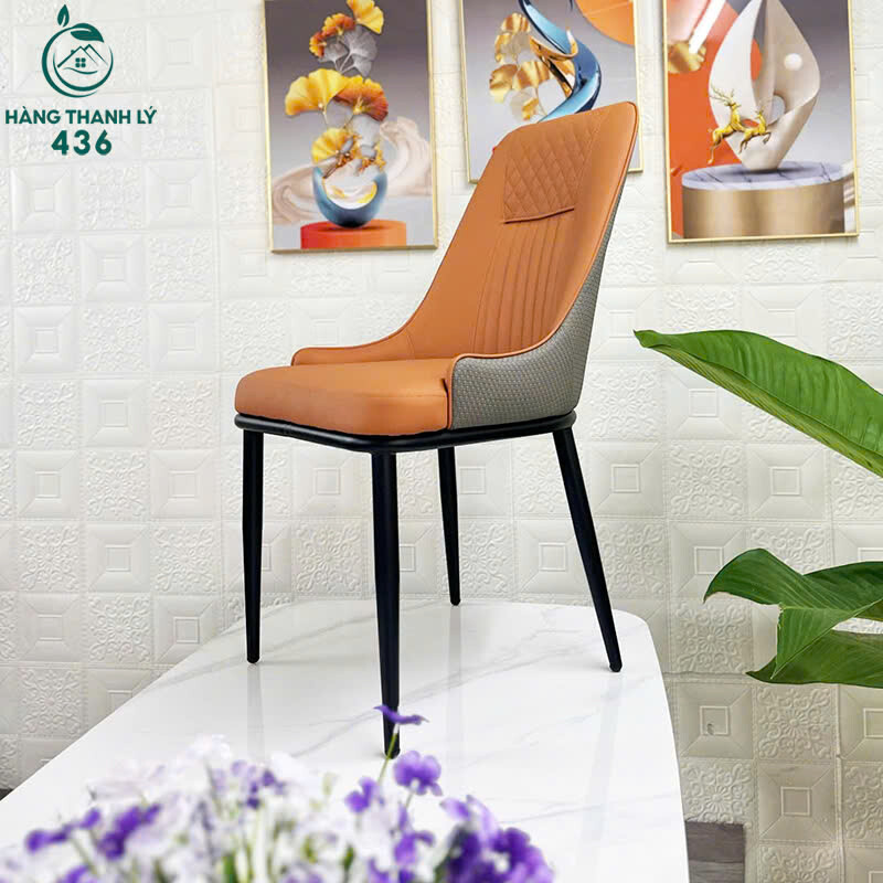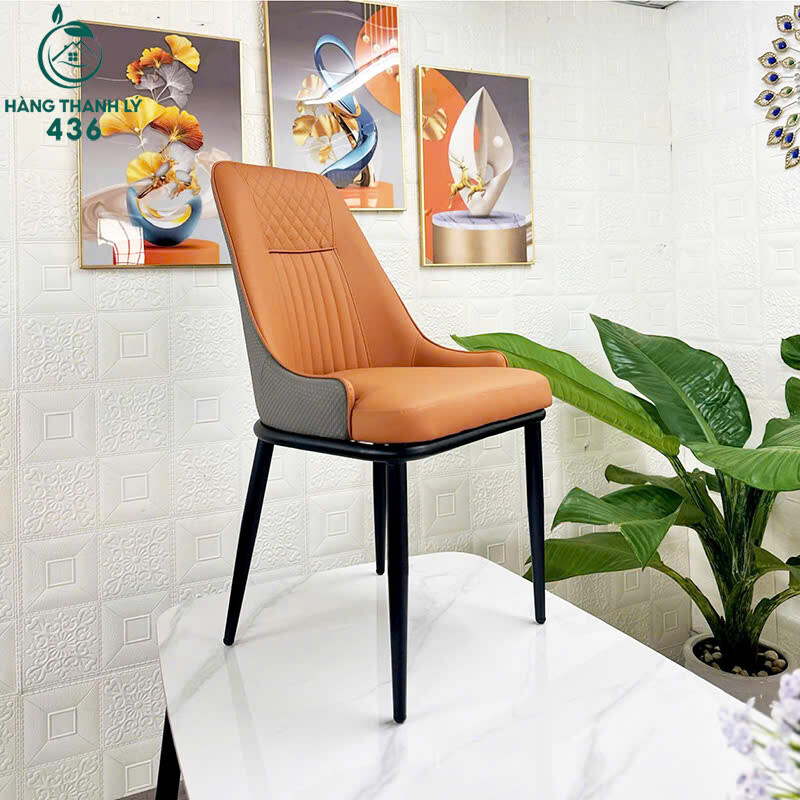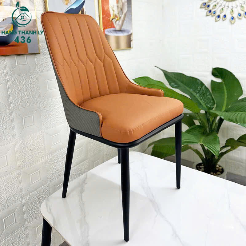 - Mô tả: Chiếc ghế này là sự kết hợp hoàn hảo giữa vẻ đẹp hiện đại và sự thoải mái. Lưng ghế được thiết kế uốn cong nhẹ nhàng, ôm sát cơ thể, mang lại cảm giác thư giãn tối đa. Chất liệu bọc da cao cấp với những đường may tinh xảo, tạo điểm nhấn ấn tượng cho không gian. Phần nệm ngồi dày dặn, êm ái, không cảm thấy mỏi dù ngồi lâu. Chân ghế làm bằng kim loại không chỉ chắc chắn mà còn tạo nên một tổng thể hài hòa và thanh lịch. Đây là lựa chọn lý tưởng cho phòng ăn gia đình, nhà hàng cao cấp.