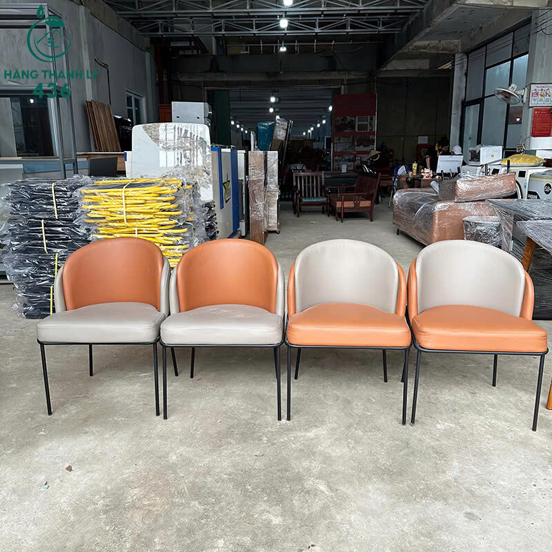 Ghế Cafe Cũ Bọc Đệm Da Màu Cam Êm Ái Chân Sắt (Nhiều Mẫu)