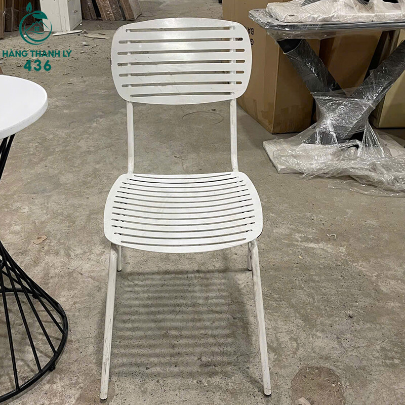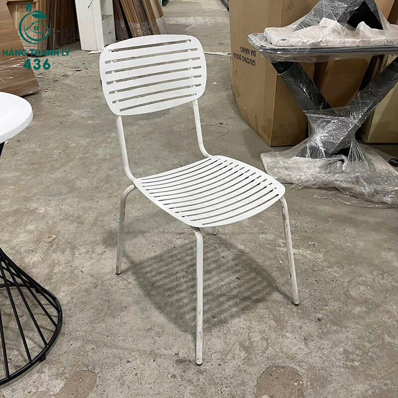 Ghế Cafe Sắt Màu Trắng Nan Thưa Chống Gỉ Bền Mới 99%