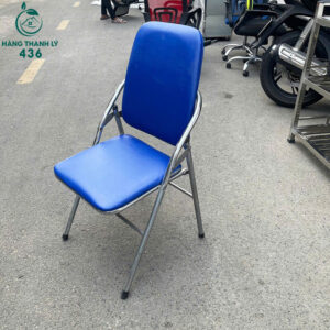 Mô tả: Ghế xếp khung sắt thiết kế đơn giản nhưng chắc chắn, phần nệm simili màu xanh dễ lau chùi và sử dụng bền bỉ. Ghế có thể gấp gọn khi không sử dụng, phù hợp cho văn phòng, phòng họp, quán ăn hoặc sử dụng trong gia đình. Sản phẩm còn đẹp và hoạt động tốt, giúp tiết kiệm chi phí mà vẫn đảm bảo nhu cầu sử dụng.