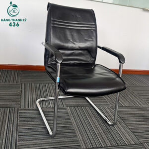- Mô tả: Ghế da đen chân quỳ là mẫu ghế phổ biến trong phòng họp, văn phòng và khu vực tiếp khách nhờ thiết kế đơn giản nhưng sang trọng. Tựa lưng cao vừa vặn, nệm da bọc êm tạo cảm giác ngồi thoải mái trong thời gian dài. Khung chân sắt mạ chrome chắc chắn, không rung lắc, chịu lực tốt và sử dụng bền theo thời gian. Tay ghế bằng nhựa cứng, bo cong ôm tay dễ chịu khi ngồi làm việc hoặc họp hành. Hàng còn đẹp 90%, da không rách, ngồi rất êm, phù hợp công ty mua số lượng hoặc trang bị lại nội thất văn phòng tiết kiệm chi phí.