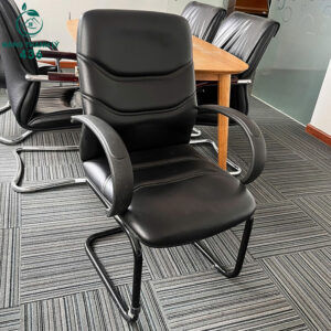 - Mô tả: Mẫu ghế da đen chân quỳ này nổi bật với phần lưng cong ôm sát lưng, giúp ngồi họp hoặc làm việc lâu vẫn dễ chịu. Nệm da PU mềm, bề mặt còn đẹp 90%, không bị nứt hay bong tróc. Tay vịn bằng nhựa dày, cầm chắc tay và hỗ trợ tốt cho tư thế ngồi. Chân sắt sơn tĩnh điện cứng cáp, độ bền cao, chịu lực tốt và hạn chế trầy xước trong quá trình sử dụng. Form ghế rộng rãi, ngồi thoải mái cho cả nhân viên văn phòng lẫn khách đến làm việc. Phù hợp setup phòng họp, phòng chờ, văn phòng công ty muốn tiết kiệm chi phí nhưng vẫn đảm bảo tính thẩm mỹ.