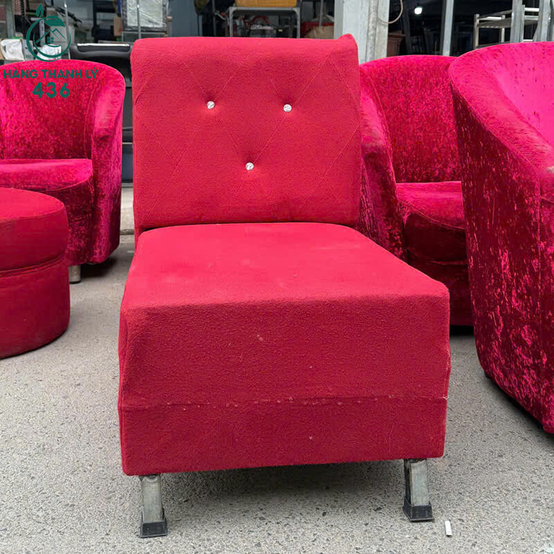 Mô tả: Mẫu ghế đơn bọc nỉ màu đỏ nổi bật, thiết kế dáng thấp gọn gàng, kèm theo đôn tròn tiện dụng để gác chân hoặc ngồi phụ. Phần lưng ghế may nút tạo điểm nhấn, form ghế chắc chắn, ngồi êm và thoải mái. Phù hợp dùng cho quán café, spa, tiệm nail, phòng chờ hoặc góc thư giãn trong nhà. Hàng cũ còn sử dụng tốt, màu sắc bắt mắt, kê vào là dùng ngay.