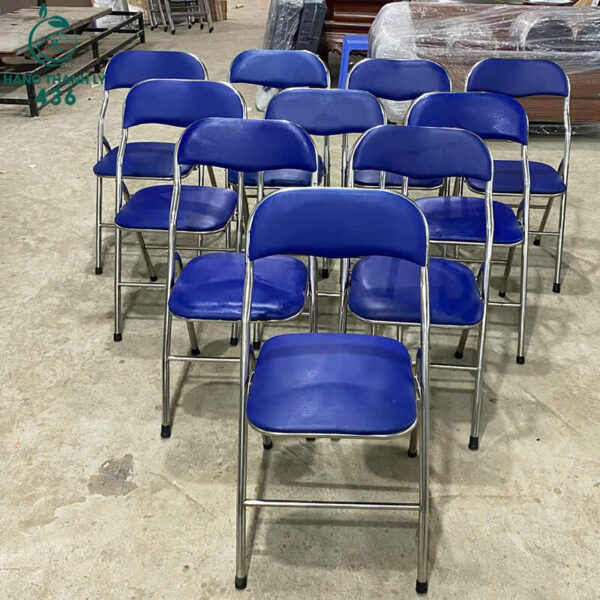 - Mô tả: Ghế xếp inox nệm xanh cũ phù hợp cho văn phòng, gia đình, trường học hoặc hội trường. Khung ghế được làm từ inox sáng bóng, chắc chắn, có khả năng chịu lực tốt, đảm bảo độ bền lâu dài. Phần nệm ghế và tựa lưng được bọc da màu xanh dương, tạo cảm giác êm ái, dễ vệ sinh và mang lại vẻ hiện đại, tinh tế. Ghế có thiết kế gấp gọn, dễ dàng di chuyển và tiết kiệm không gian khi không sử dụng. Với kiểu dáng đơn giản, tiện lợi và độ bền cao, ghế xếp inox nệm xanh là lựa chọn lý tưởng cho nhiều không gian sử dụng khác nhau.