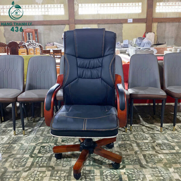 - Mô tả: Ghế giám đốc bọc da màu đen, thiết kế sang trọng với tựa lưng cao và đệm ngồi êm ái, mang lại sự thoải mái tuyệt đối cho người sử dụng. Khung ghế làm từ gỗ tự nhiên chắc chắn, kết hợp với các đường may tinh tế tạo điểm nhấn thẩm mỹ cho không gian văn phòng. Chất liệu da cao cấp dễ dàng vệ sinh và giữ được độ bền qua thời gian. Đây là sự lựa chọn lý tưởng cho các không gian làm việc sang trọng, giúp nâng cao sự chuyên nghiệp trong công việc.