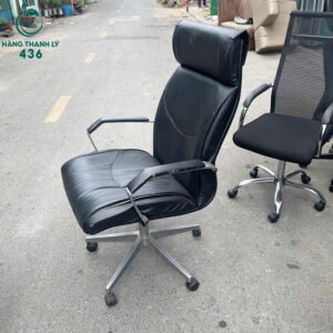 - Mô tả: Ghế giám đốc bọc da cũ thiết kế hiện đại, mang lại sự thoải mái và chuyên nghiệp cho không gian làm việc. Lưng ghế cao ôm sát lưng giúp giảm đau mỏi khi ngồi lâu, phần nệm da êm ái, dễ lau chùi và bền màu theo thời gian. Tay vịn cố định chắc chắn, chân sao nhựa cứng chịu lực tốt, bánh xe xoay 360° tiện di chuyển. Ghế có thể điều chỉnh độ cao phù hợp nhiều người dùng. Sản phẩm còn mới khoảng 90%, sử dụng tốt, không rách da hay tróc lưng.