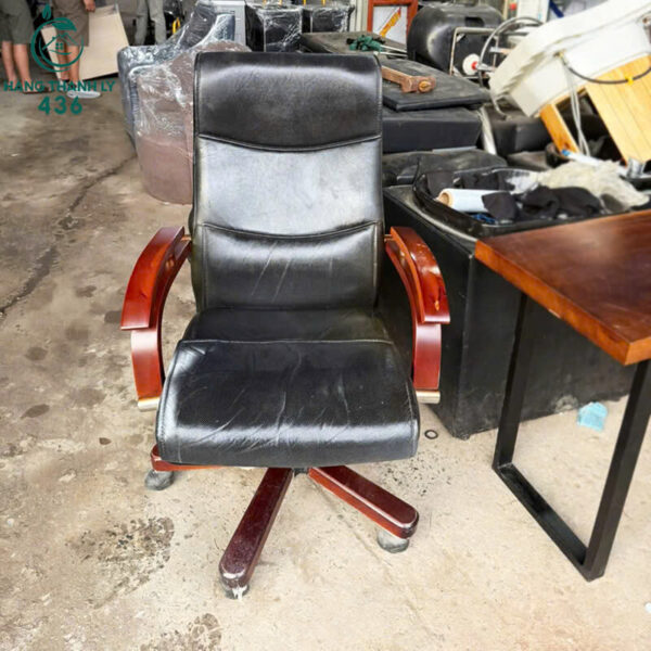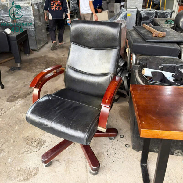 Ghế Giám Đốc Cũ Da Bọc Mềm Ngồi Thoải Mái Tay Vịn Gỗ
