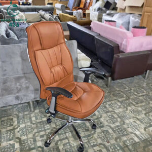- Mô tả: Ghế giám đốc với thiết kế tựa lưng cao, bọc da màu nâu sang trọng, mang đến cảm giác thoải mái khi ngồi lâu. Đệm ngồi và lưng ghế êm ái, hạn chế đau mỏi, phù hợp cho nhân viên văn phòng, học tập hoặc làm việc tại nhà. Khung chân ghế bằng inox sáng bóng, chắc chắn, chịu lực tốt. Ghế có bánh xe di chuyển linh hoạt, xoay 360 độ và điều chỉnh độ cao dễ dàng. Phù hợp cho người cần ghế chất lượng nhưng tiết kiệm chi phí.