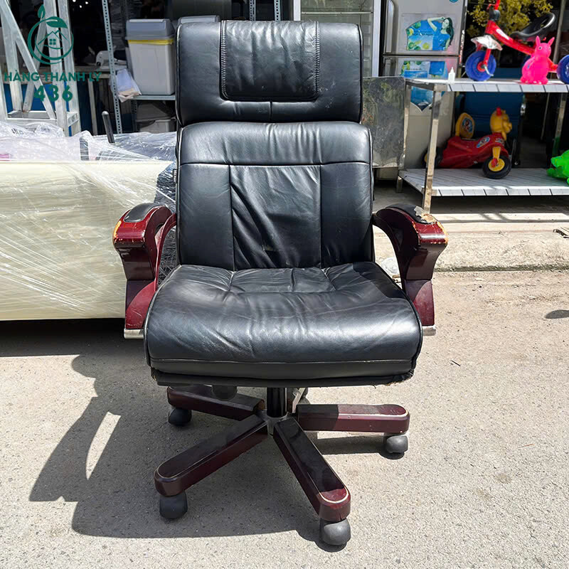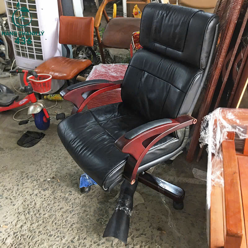 - Mô tả: Ghế giám đốc cũ bọc da đen, thiết kế lưng cao hỗ trợ tốt cho cột sống và mang lại cảm giác thoải mái khi ngồi làm việc lâu. Tay ghế được ốp gỗ tạo điểm nhấn sang trọng, phần đệm ngồi và tựa lưng bọc da dày dặn, êm ái. Ghế trang bị chân xoay bánh xe linh hoạt, giúp di chuyển dễ dàng trong không gian văn phòng. Đây là lựa chọn phù hợp cho phòng làm việc của giám đốc, trưởng phòng hoặc những ai cần một chiếc ghế ngồi thoải mái, bền chắc và vẫn giữ được phong cách chuyên nghiệp.