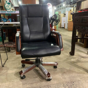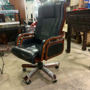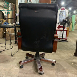 - Mô tả: Ghế giám đốc cũ bọc da đen, thiết kế lưng cao hỗ trợ tốt cho cột sống và mang lại cảm giác thoải mái khi ngồi làm việc lâu. Tay ghế được ốp gỗ tạo điểm nhấn sang trọng, phần đệm ngồi và tựa lưng bọc da dày dặn, êm ái. Ghế trang bị chân xoay bánh xe linh hoạt, giúp di chuyển dễ dàng trong không gian văn phòng. Đây là lựa chọn phù hợp cho phòng làm việc của giám đốc, trưởng phòng hoặc những ai cần một chiếc ghế ngồi thoải mái, bền chắc và vẫn giữ được phong cách chuyên nghiệp.