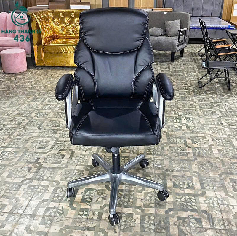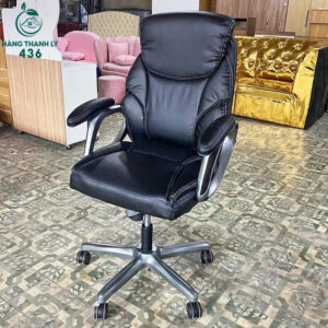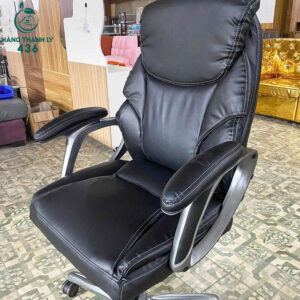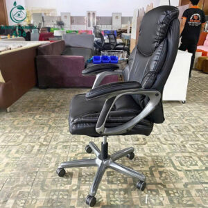 - Mô tả: Mẫu ghế giám đốc cũ lưng cao bọc da đen sang trọng, thiết kế chắc chắn và êm ái. Phần tay vịn được lót đệm, thân ghế bọc da mềm mịn, giúp người ngồi cảm thấy thoải mái suốt nhiều giờ làm việc. Ghế có trục xoay linh hoạt 360 độ, bánh xe di chuyển mượt, điều chỉnh độ cao dễ dàng. Phần lưng ghế bo cong nâng đỡ cột sống lưng tốt hơn. Thiết kế phù hợp cho phòng giám đốc, lãnh đạo hoặc người làm việc lâu giờ cần sự thư giãn và sang trọng.