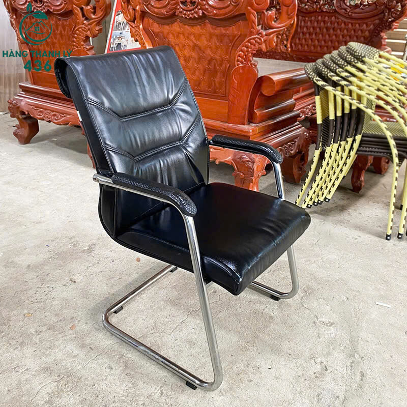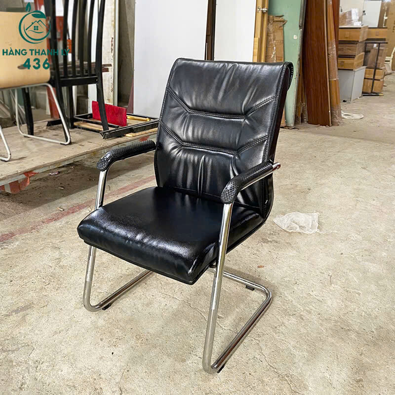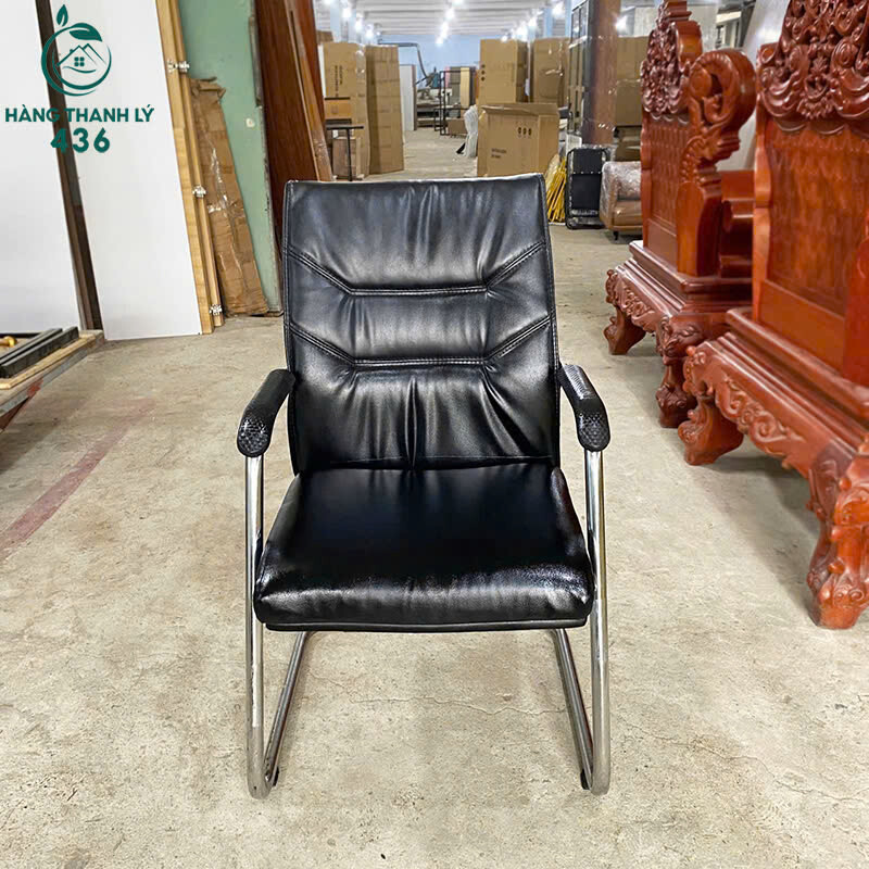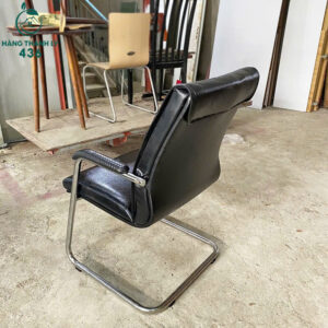 Ghế Hòa Phát Cũ Lưng Cao Bọc Da Đen Chân Quỳ Inox