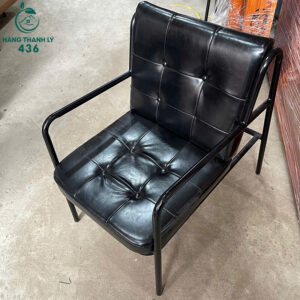 - Mô tả: Ghế cafe đơn cũ bọc da màu đen, thiết kế gọn gàng với phần khung sắt sơn tĩnh điện chắc chắn, chịu lực tốt. Mặt ngồi và lưng tựa được bọc da công nghiệp, có các đường may caro nổi bật, mang đến sự hiện đại và dễ dàng vệ sinh. Ghế có kích thước nhỏ gọn, thích hợp sử dụng cho quán cafe, văn phòng, phòng chờ hoặc không gian gia đình. Kiểu dáng đơn giản nhưng tinh tế, kết hợp khung kim loại tạo sự vững chãi, giúp người ngồi cảm thấy thoải mái trong thời gian dài.