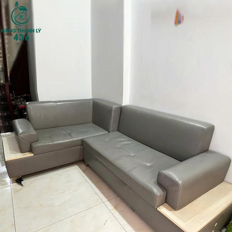 - Mô tả: Bộ sofa da cũ chữ L màu xám, thiết kế đơn giản, gọn gàng, phù hợp cho nhiều không gian phòng khách, căn hộ hoặc văn phòng nhỏ. Ghế bọc da màu xám dễ lau chùi, mang lại cảm giác hiện đại. Đệm ngồi êm, bề mặt ghế may dằn điểm nhấn, khung gỗ chắc chắn đảm bảo độ bền trong quá trình sử dụng. Với kiểu dáng chữ L tiết kiệm diện tích, sofa giúp tối ưu không gian, dễ dàng kê sát tường, vừa tiện lợi vừa sang trọng.