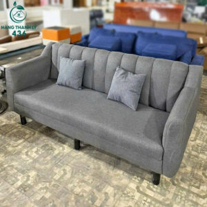 - Mô tả: Sofa mang phong cách hiện đại và tối giản, được bọc vải màu xám đậm sang trọng, dễ dàng phối hợp với nhiều tông màu nội thất. Thiết kế dáng thấp, vuông vắn với các đường nét tinh gọn, mang lại vẻ đẹp thanh lịch cho không gian. Sofa bao gồm hai gối tựa lưng nhỏ đồng màu, tạo cảm giác êm ái và thoải mái tối đa. Chân ghế thấp màu đen tạo sự vững chãi và hài hòa với tổng thể. Đây là lựa chọn lý tưởng cho phòng khách, phòng chờ hoặc không gian studio.