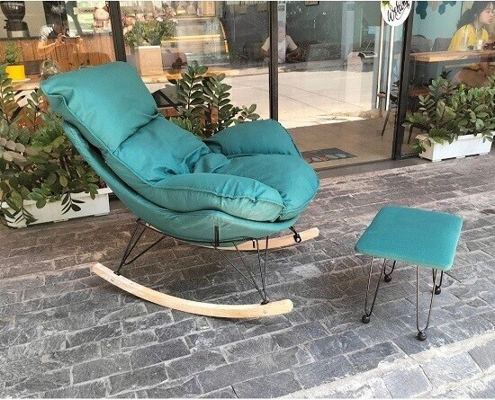 Mô tả: Chiếc ghế thư giãn này là lựa chọn số một cho những ai muốn có góc riêng để nghỉ ngơi sau ngày dài. Ghế có phần nệm cực dày, êm ái như một chiếc sofa mini, cho phép bạn ngồi hay ngả lưng đều thoải mái. Khung ghế được thiết kế bập bênh nhẹ nhàng, giúp thư giãn cơ thể và giảm stress rất tốt. Đặc biệt có thêm chiếc đôn nhỏ gọn đi kèm, dùng để gác chân, tạo tư thế nằm nghỉ tối ưu. Kích thước vừa phải, dễ dàng đặt ở phòng khách, phòng ngủ hoặc ban công. Bạn sẽ có ngay một chỗ dựa lý tưởng để đọc sách, xem phim hay chợp mắt nhanh chóng mà không tốn nhiều chi phí.