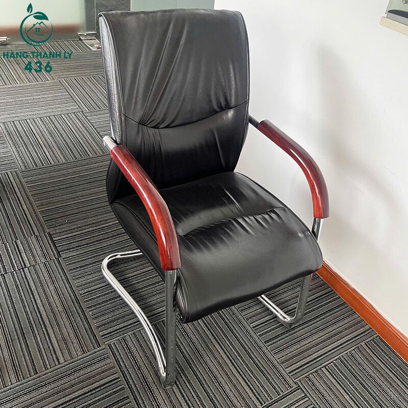 Ghế Văn Phòng Bọc Da Cũ Tay Gỗ Cong