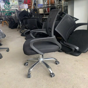 - Mô tả: Ghế văn phòng lưng lưới cũ có thiết kế hiện đại, mang lại cảm giác thoải mái khi ngồi làm việc lâu dài. Phần lưng lưới thoáng khí giúp hạn chế mồ hôi, tạo sự dễ chịu trong suốt ngày dài. Ghế trang bị tay vịn chắc chắn và khả năng ngả lưng linh hoạt, hỗ trợ tư thế ngồi khoa học. Chân xe chắc chắn kết hợp bánh xe xoay 360 độ, di chuyển nhẹ nhàng và tiện lợi. Đệm ngồi bọc nỉ êm ái, ít xẹp lún, phù hợp cho không gian văn phòng, phòng học.