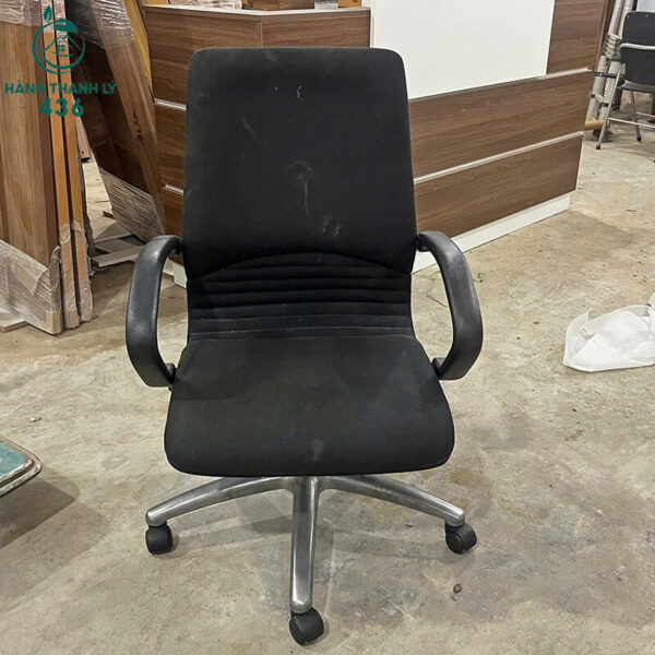 - Mô tả: Ghế xoay văn phòng cũ có thiết kế hiện đại, chất liệu vải bền bỉ và thoáng mát. Chân ghế làm từ kim loại chắc chắn, có khả năng xoay và điều chỉnh chiều cao dễ dàng, giúp người sử dụng thoải mái trong suốt một ngày làm việc dài. Lưng ghế cao, có các đường gấp khúc giúp hỗ trợ lưng tốt hơn, giảm đau mỏi khi ngồi lâu. Đây là lựa chọn hoàn hảo cho các không gian văn phòng, phòng làm việc cá nhân, hoặc phòng họp.
