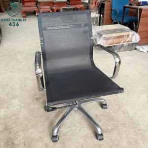- Mô tả: Ghế văn phòng cũ lưng thấp được thiết kế nhỏ gọn, thích hợp cho nhiều không gian làm việc. Phần lưng ghế bằng lưới thoáng khí, hạn chế hầm nóng khi ngồi lâu. Khung ghế bằng inox sáng bóng, kết hợp tay vịn cứng cáp, tạo cảm giác chắc chắn khi sử dụng. Chân ghế xoay bánh xe linh hoạt, giúp di chuyển dễ dàng trong phòng làm việc. Ghế có cần gạt điều chỉnh độ cao, mang lại sự tiện lợi và phù hợp cho nhiều đối tượng sử dụng.