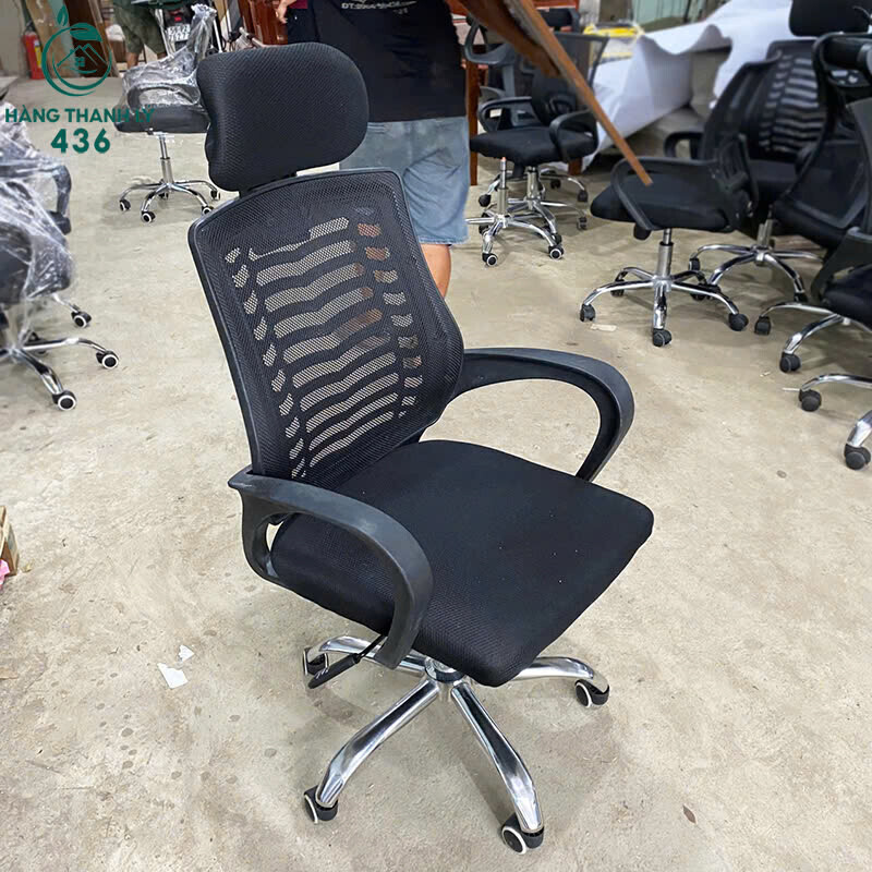 Mô tả: Ghế văn phòng có thiết kế lưng lưới thoáng khí, giúp người sử dụng cảm thấy thoải mái suốt cả ngày làm việc. Đệm ngồi êm ái kết hợp với tựa lưng hỗ trợ phần lưng, giúp giảm đau mỏi hiệu quả. Chân ghế xoay linh hoạt, dễ dàng di chuyển và điều chỉnh độ cao phù hợp với nhu cầu sử dụng. Phù hợp với không gian văn phòng, phòng làm việc cá nhân hoặc các công ty cần sự thoải mái và tiện lợi.